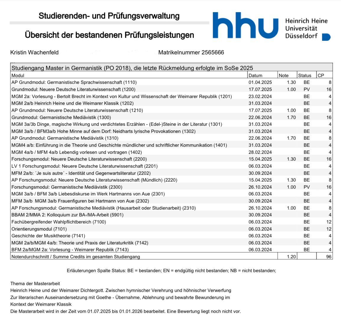 - Laufende Masterarbeit im Fach Literaturwissenschaft an der Heinrich-Heine-Universität Düsseldorf