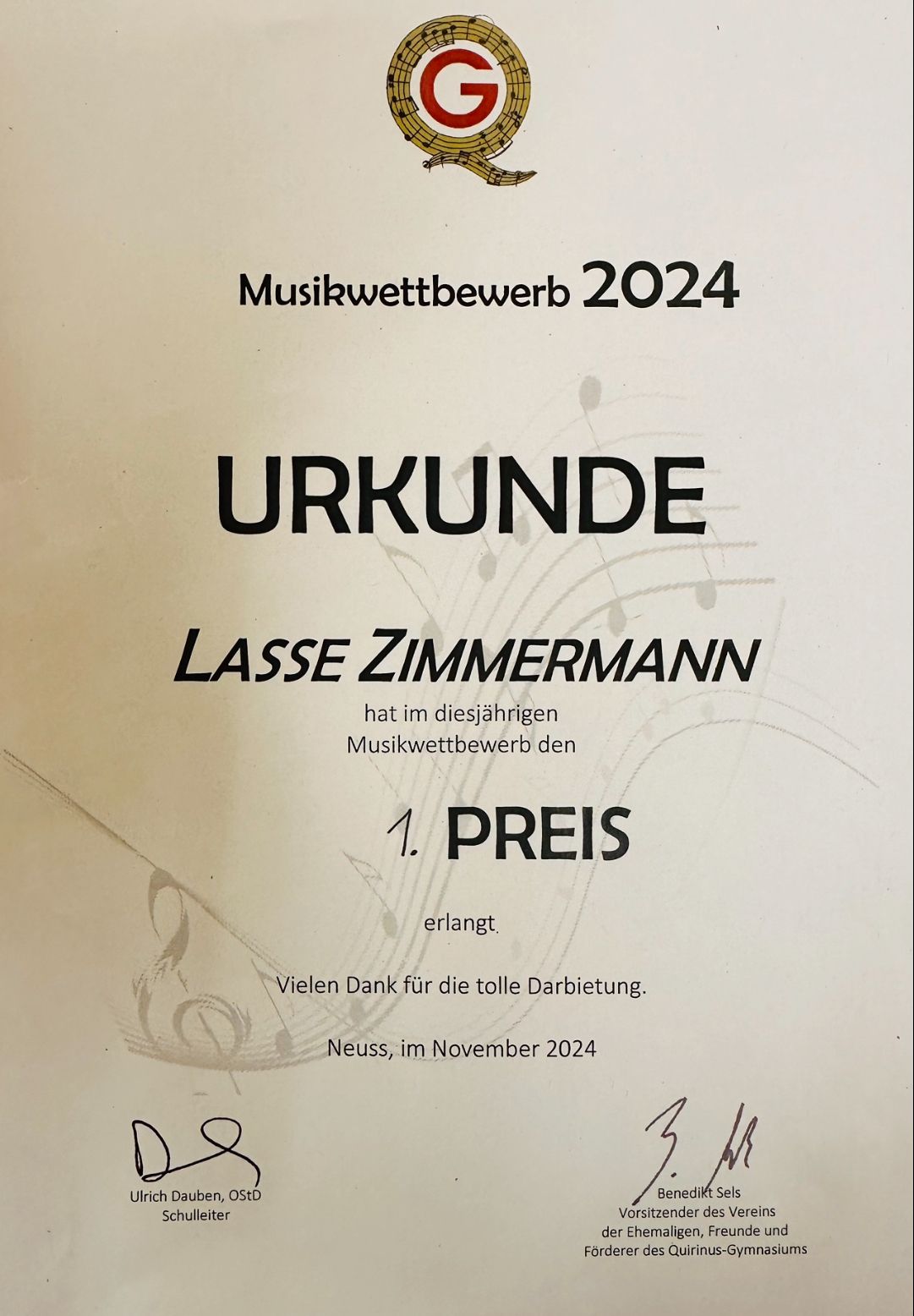 Die Klavierakademie beglückwünscht Lasse zum 1. Preis!